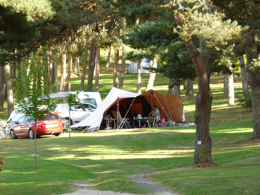 De grands emplacements, au soleil, en bord de rivière, ou semi ombragé sous les pins pour les campeurs en tentes, camping-cars ou caravanes.