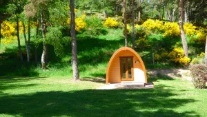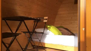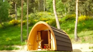 Eenvoudige accommodatie voor een verblijf 100% natuur. In samensmelting met de natuur is de POD een eenvoudig concept van houten hut. Comfortabel en ruim, het is uitgerust met elektriciteit en verwarming. Met zijn afgeronde vormen en volledig houten interieur is de POD een echte kleine cocon die je een vreemd gevoel van welzijn zal geven.