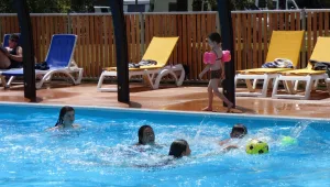 - Zwembad (16m*7m) en peuterbad, overdekt en verwarmd (unsupervised pool onder de verantwoordelijkheid van ouders of begeleidende personen - toegang is beperkt tot gasten die op de camping verblijven).