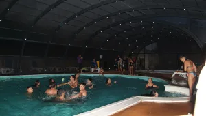 - Zwembad (16m*7m) en peuterbad, overdekt en verwarmd (unsupervised pool onder de verantwoordelijkheid van ouders of begeleidende personen - toegang is beperkt tot gasten die op de camping verblijven).
